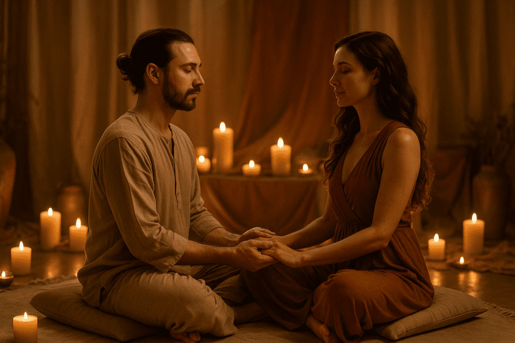 Methoden: Rollenspiel-Training, klare BDSM-Kommunikation, tantrische Rituale, Achtsamkeit und Atemarbeit.